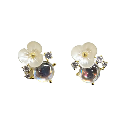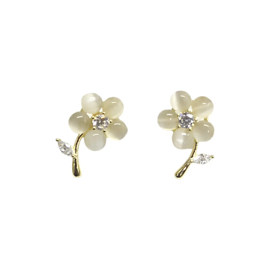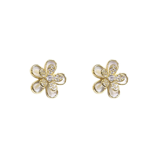 Brincos Flor Prata Dourada e Zircónias Brancas