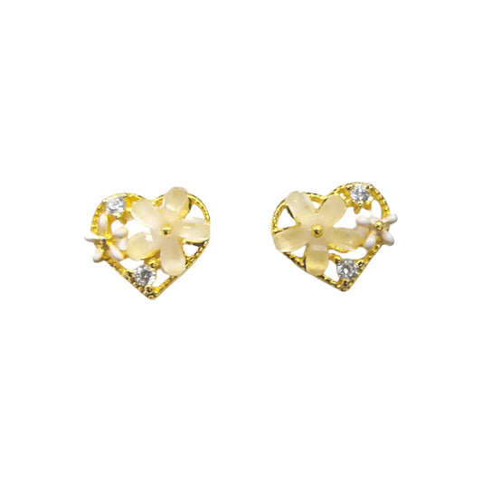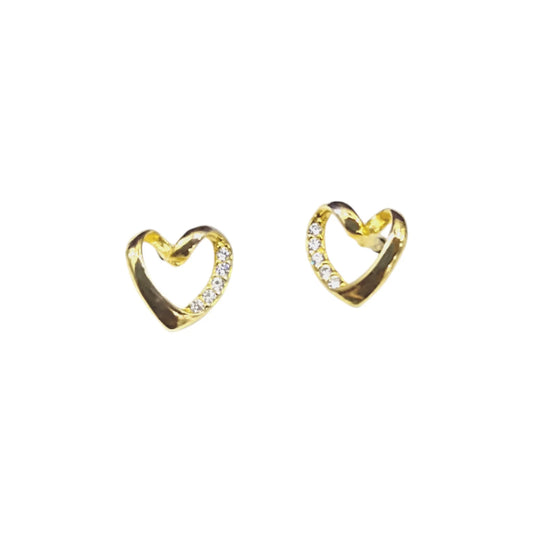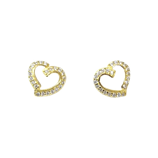 Brincos Coração Prata Dourada e Zircónias Brancas