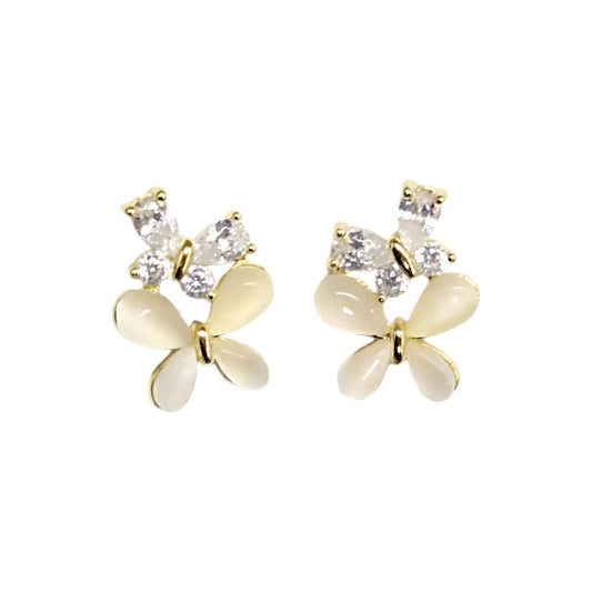 Brincos Prata Dourada Flor com Zircónias Brancas