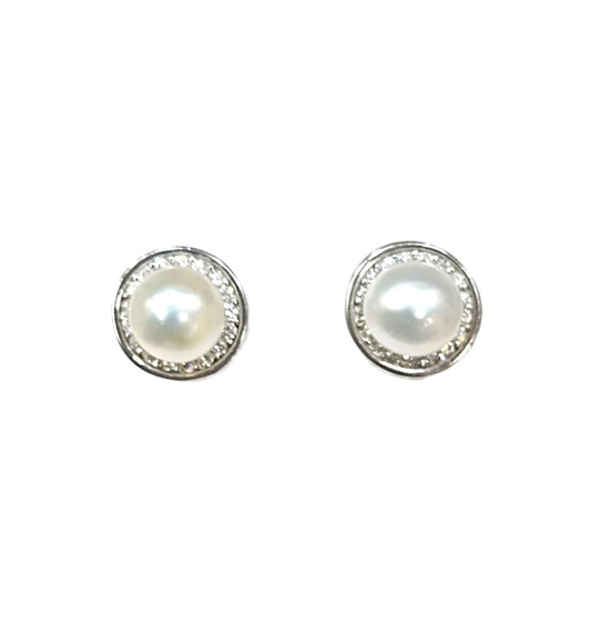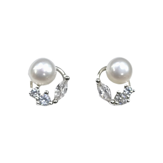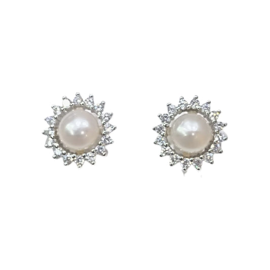 Brincos Perola Prata com Zircónias Brancas